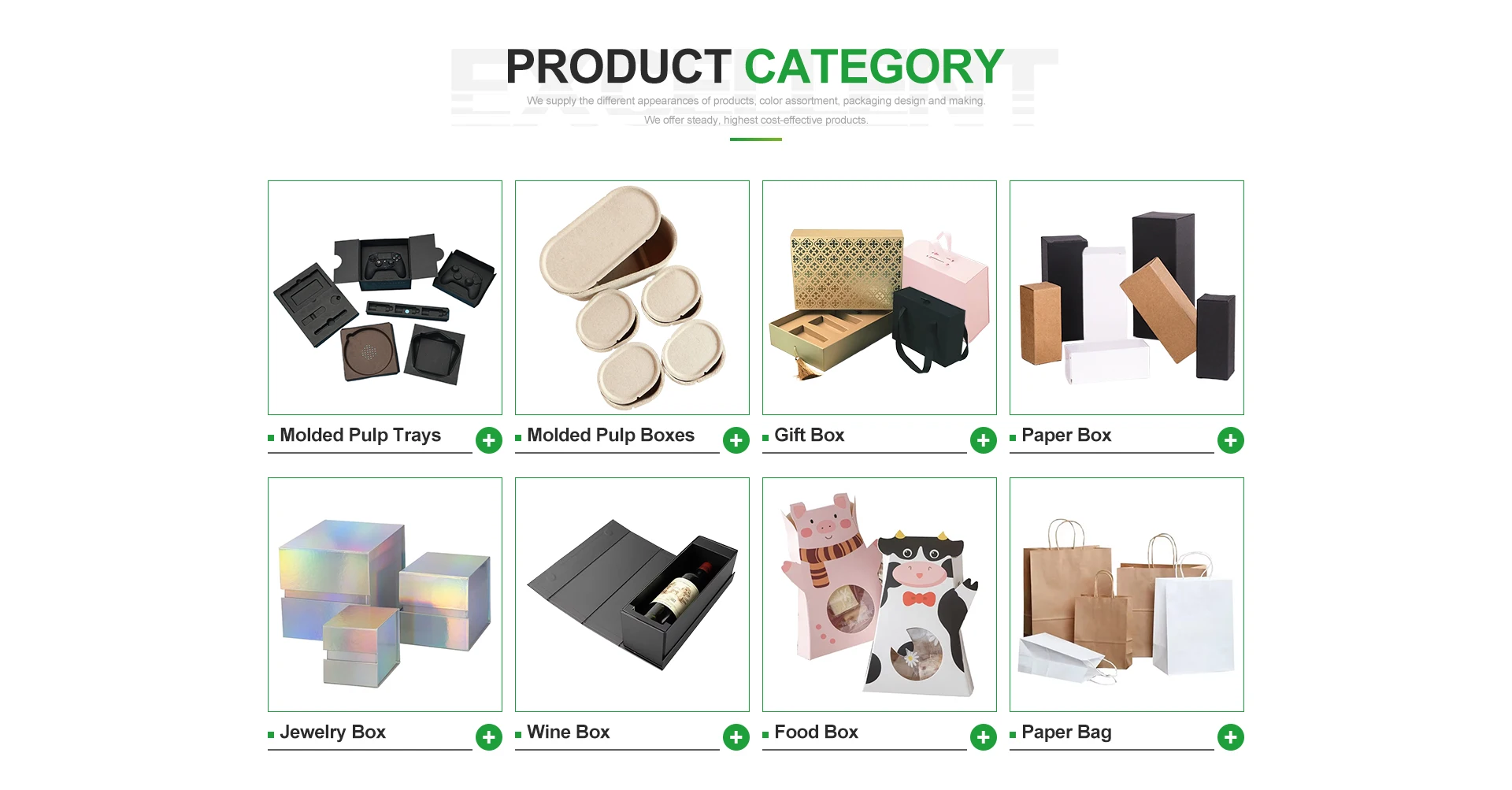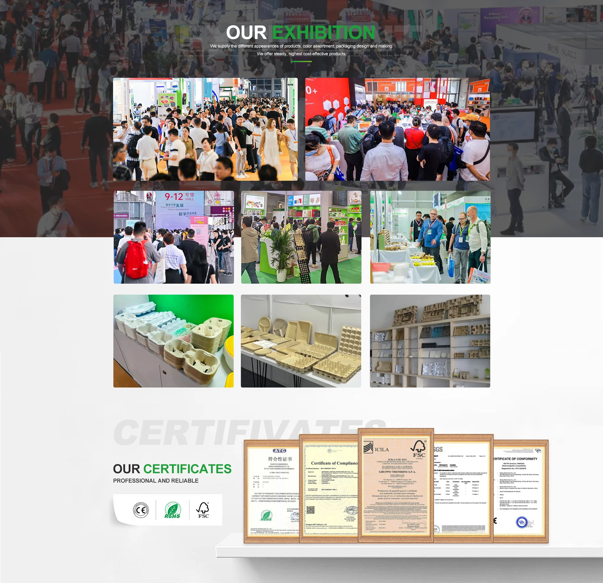 Productos principales:Cajas de papel, insertos de pulpa, vasos de papel, vajilla desechable, bandeja para huevos de pulpa de papel